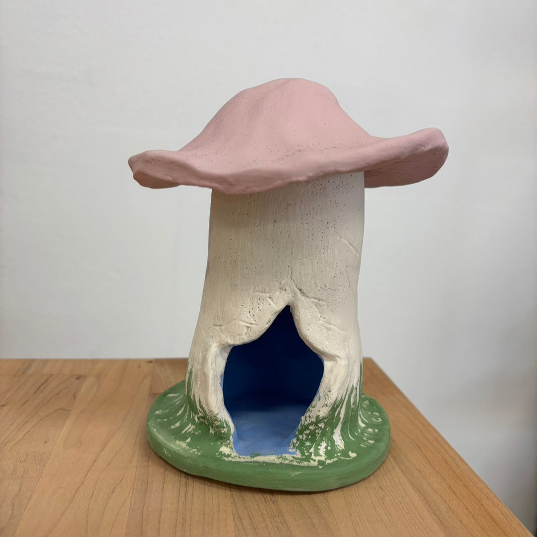 - Learn by doing: Using slabs and hand-building techniques, students will create their very own large and playful mushroom house, full of charm and imagination. From quirky windows and chimneys to winding paths, textured roofs, and funky doors — everyone will get to personalize their house with magical touches.